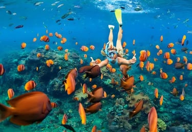 A hidden gem with calm waters, vibrant coral reefs, and colorful tropical fish perfect for relaxed snorkeling and underwater exploration.